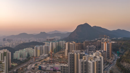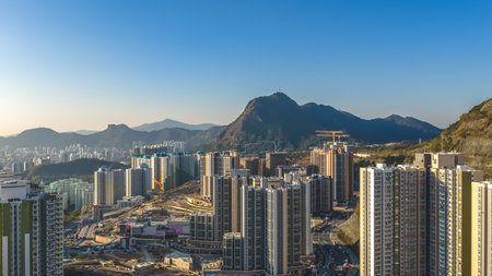Aerial view Panomara Cityscape of Kowloon District in Hong Kong, China
