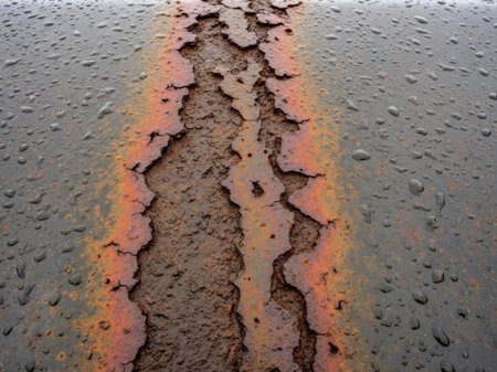 Peeling paint rusting metal rough texture.
