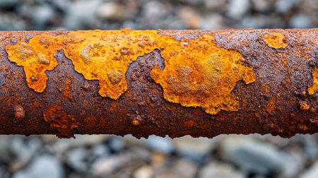 A photograph of a rusted pipe attached to a rusted metal wall, showcasing the corroded state of the materials, Detailed close-up of a corroded pipeline, AI Generated