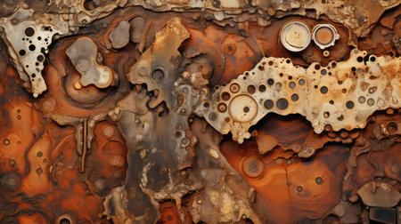 Rusty metal plate with abstract textured pattern generated by artificial intelligence