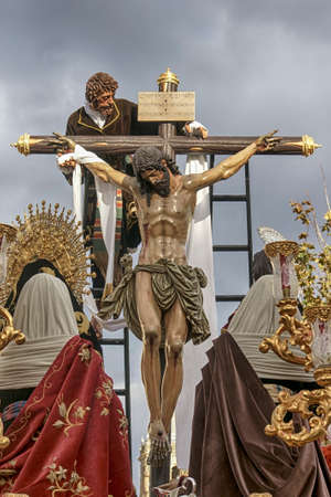 Figure of Jesus on the cross carved in wood by the sculptor Alvarez Duarte, Holy Christ of the Estudiantes, Linares, Jaen province, Spain