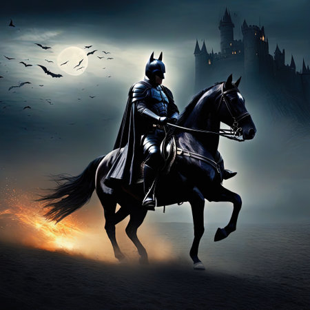 The dark knight in a cape on a horseback the ange of apocalypse dark fantasy