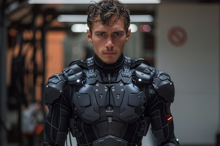 Futuristic robot warrior in dark armor