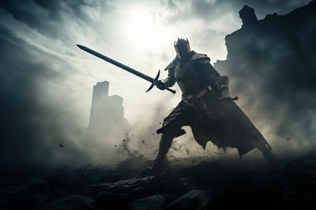 A knight clad in gleaming armor, a symbol of chivalry and valor, standing resolute and ready for noble quests