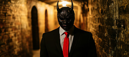 Darkly Dressed Figure in Devil Mask Mystery, Elegance, and Intrigue in a Single Shot