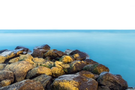Beautiful sunrise over the beach in long exposure. Moving elements sunrise and wave photography from the rocky beach in india. Wave breaker rocks, slow-shutter Sea Waves and Rocks photography.