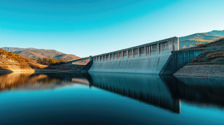 Harnessing the Power of Water: A Hydroelectric Dam Demonstrating the Energy Potential of Water Sources on International Day of Clean Energy. Concept Hydroelectric Power, Clean Energy