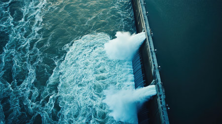 Hydroelectric dam releasing water for clean energy, symbolizing sustainability and combating climate change