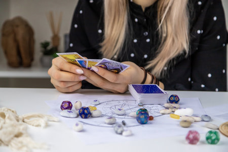 Fortune telling a deck of tarot cards with other fortune telling items