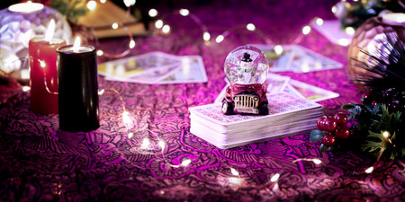 Defocused mystic ritual with tarot cards, and candles.