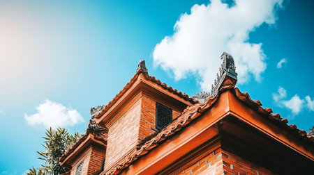 Stunning Asian Brick Architecture Sunny Day Exterior Building Roof Sky Red Home Warm View Brown