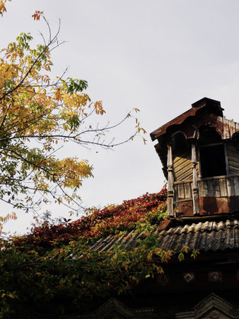 Front view architecture rooftop of Victorian wooden house in vintage style. (Selective focus)