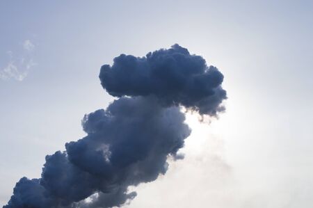Environmental problem, environmental pollution, smoke from the pipe of an industrial plant or thermal power plant against a blue sky.