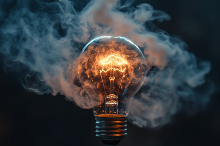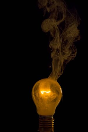Illuminated light bulb with smoke signifying new ideas and creative inspiration in business