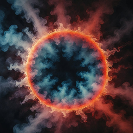 Abstract background of red, orange and blue smoke in the form of a circle