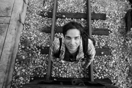 Portrait of handsome Persian tourist man at the railway station