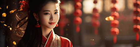 Asian girl in traditional costume for celebration. Lunar new years. Chinese New Year