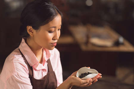 Smiling asian girl at a tea ceremony