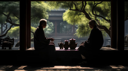 Confucianism School scholars engage in ethical discussions in classical garden