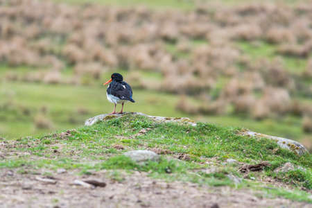 Oyster catcher on the meadow near the Leynavatn lake on Streymoy island. Leynar, Faroe Islands.