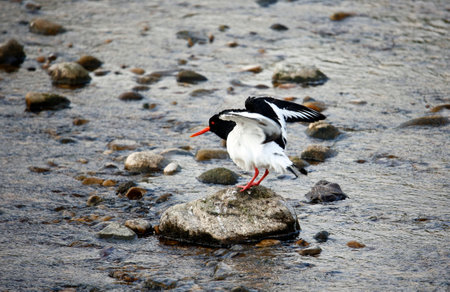 Haematopus ostralegus, bird on alert on the rocks in Norway.