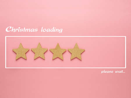 Christmas loading bar with golden star shapes on a pink background