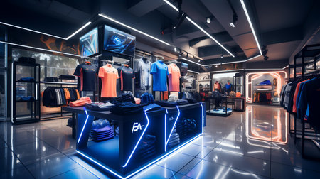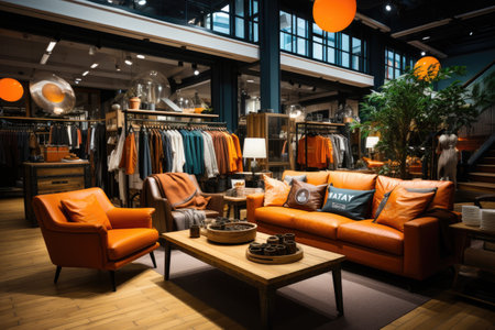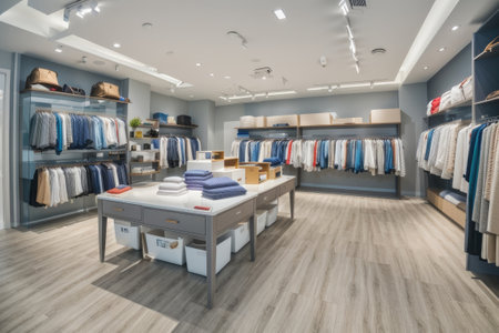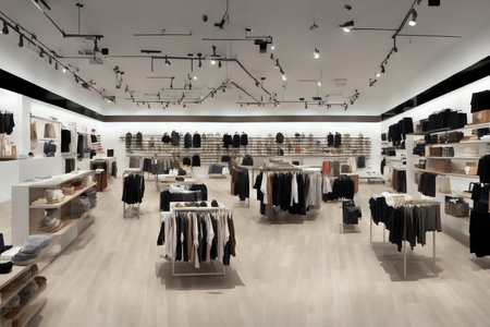 Generative AI Interior of apparel store. Clothing store.