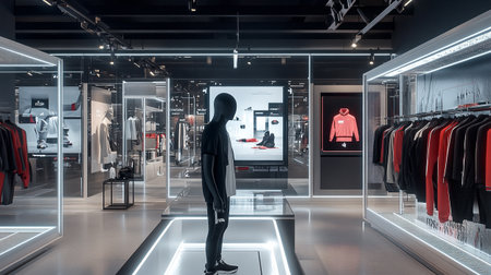 Innovative augmented reality shopping experience in a modern retail store with virtual try ons