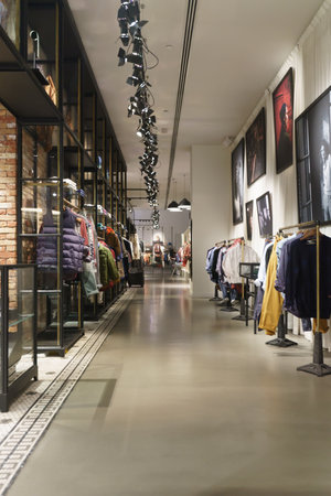 luxury and fashionable european different clothes shop in modern mall