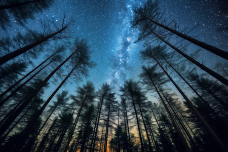 lovely low angle photograph of a woodland in the darkness of a starry night sky