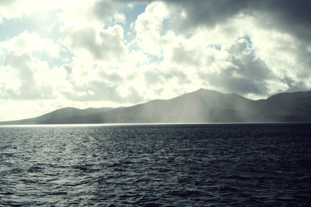 approaching rain clouds at sea, Lofoten islands bad weather