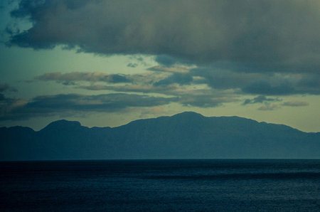 Beautiful seascape with mountains and sea. Toned.
