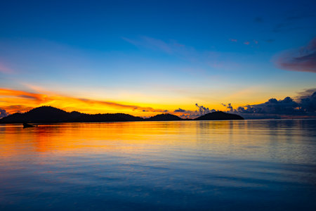 Landscape of colorful clouds in sunset or sunrise sky over sea with reflection in the tropical sea,Beautiful seascape scenery,Amazing light of nature Landscape nature background