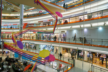 SAINT PETERSBURG, RUSSIA - CIRCA OCTOBER, 2017: inside the Nevsky center shopping mall. The Nevsky center shopping mall is major shopping center is located in downtown of St. Petersburg.