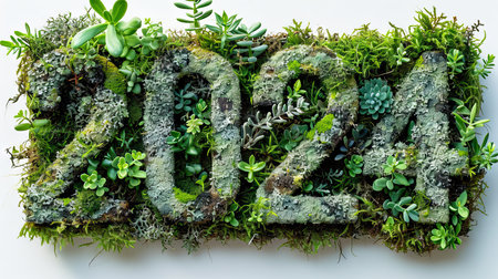New Year 2024 made of moss and lichen on white background.