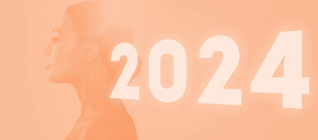 Young woman portrait toned in color of the year 2024 peach fuzz