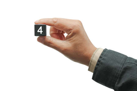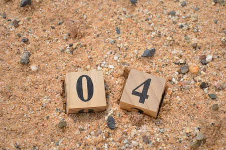Number 4, rating, award, Cover design in natural concept with a number cube on sand background.