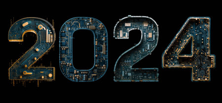 2024 new year, digital technology concept, computer and artificial intelligence, AI for 2024 taintless lifestyle