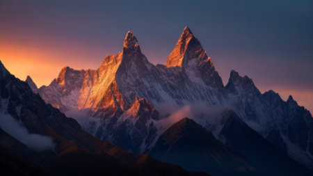 Magnificent peaks and clouds natural landscape