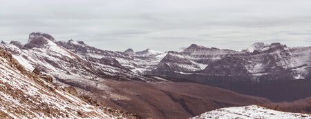 Early winter with first snow covering rocks and woods in the Glacier National Park, Montana, USA