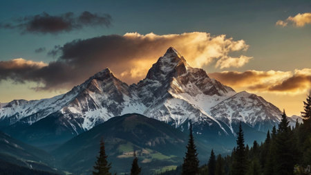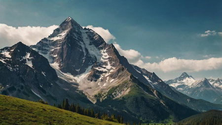 An AI generated illustration of majestic mountains revealing the majestic calm crisp beauty of nature