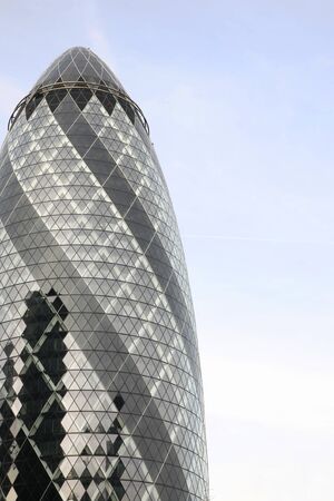 Gherkin, a modern skyscraper in the financial district of London, UK