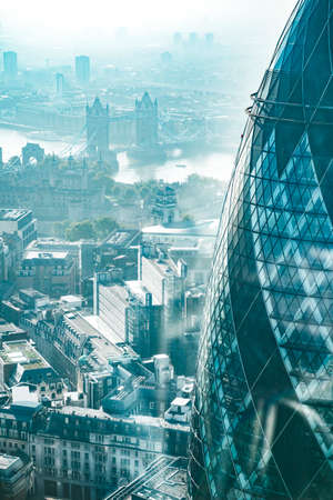 The Gherkin and the Tower Bridge aerial view of London City