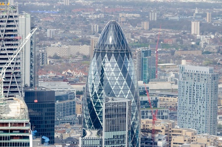 LONDON, UK - OCTOBER 14, 2015. Gherkin - iconic symbol of modern London, one of the widely recognised office block building. View from the 32 floor