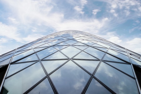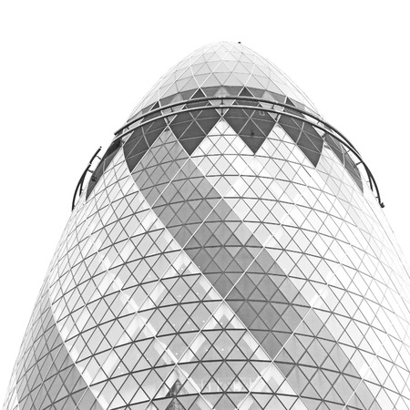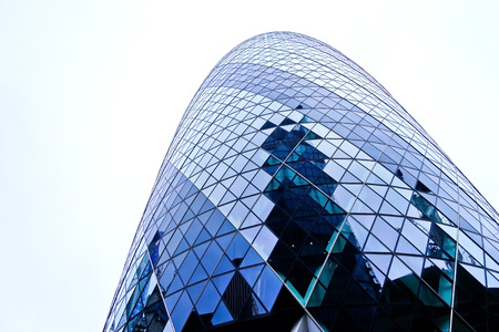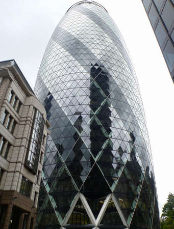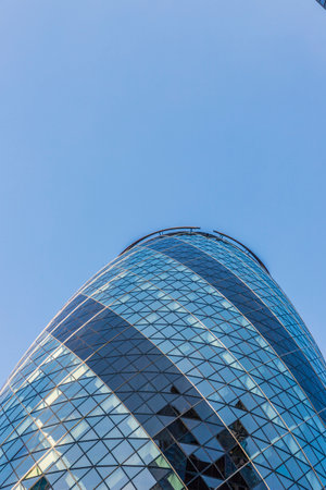 Looking up at the magnificent Gherkin skyscraper (30 St. Mary Axe) in the City of London.