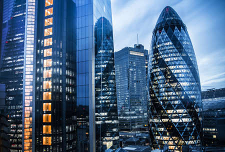 View of the office buildings in the financial district in London.