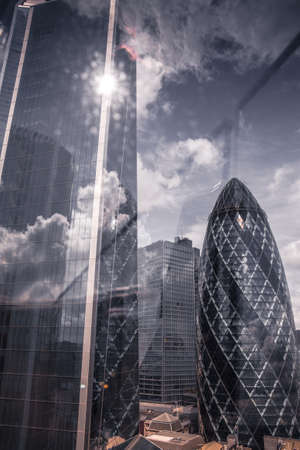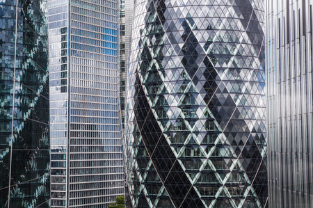 Modern building in the hearth of London City. Towers of glass and steel where thousand of people everyday works.