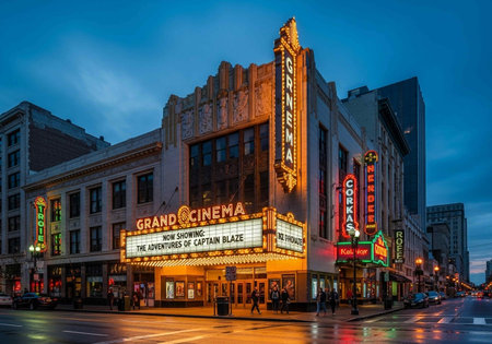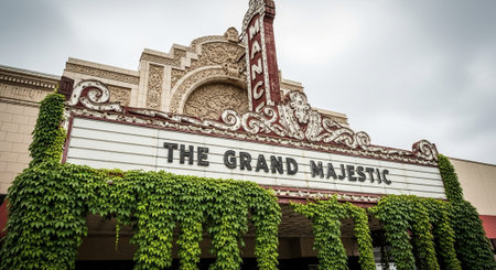 Vintage Neon Theater Sign Detail, Overcast Sky Perspective