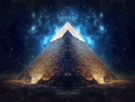 Magnificent pyramid perched on mountain summit gleaming under the mesmerizing moonlight