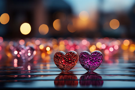 AI Generated. Two hearts are reflected in a red background
